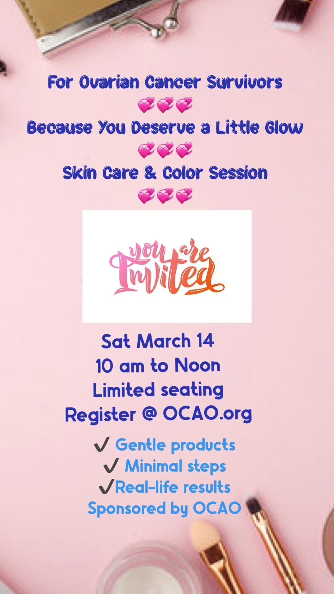 For Ovarian Cancer Survivors because you deserve a little glow - Skin Care and Color Session by Paul Fistick.